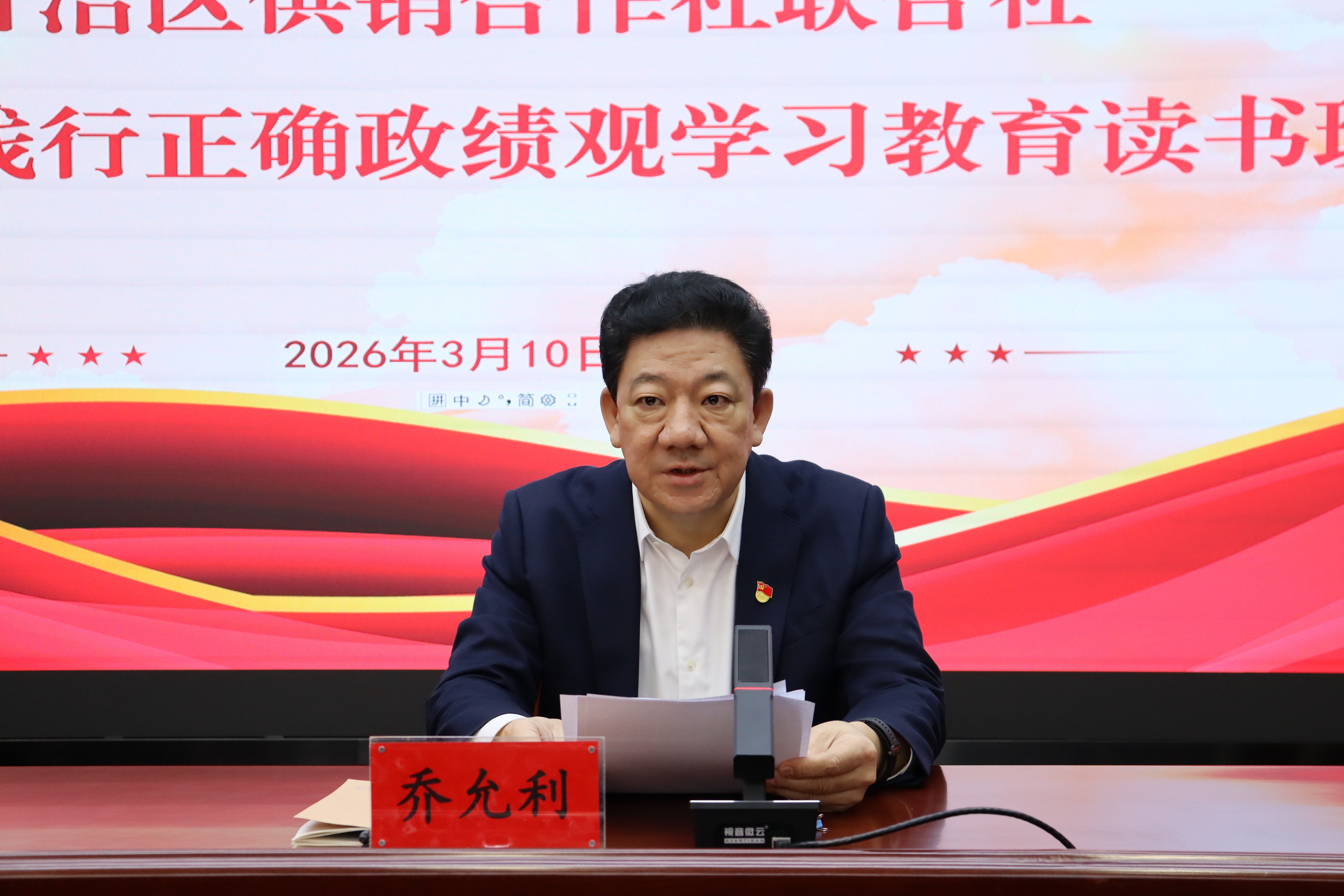 2026年3月10日至11日,新葡京门户网站 (以下简称区社)利用2天的时间举办树立和践行正确政绩观学习教育读书班,区社党组书记、理事会主任乔允利主持开班仪式并讲话,区社在家的领导班子成员参加。